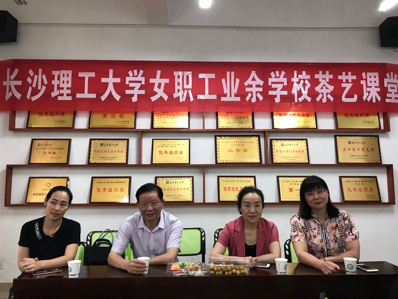 7月12日下午,湖南省总工会巡视员、女职工委员会主任周乐红、湖南省教育工会主席高新明莅临雷竞技官网女职工业余学校茶艺课堂指导工作。校党委书记付宏渊、党委副书记邹宏如陪同周乐红一行参观校园并介绍了学校情况。