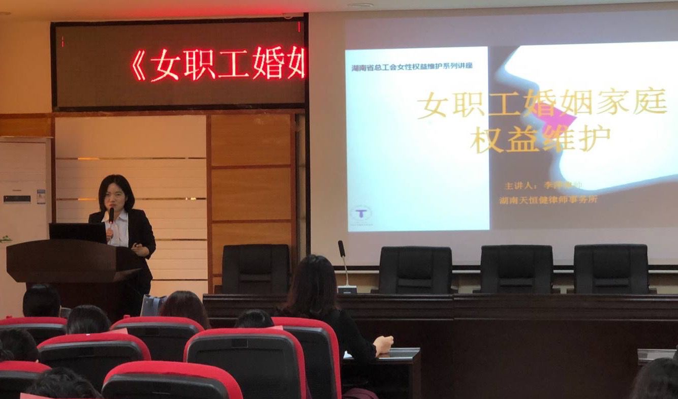 11月30日下午,“湖南省女职工素质教育大讲堂——女职工婚姻家庭权益维护”主题讲座在雷竞技官网女职工业余学校开讲。本次讲座由湖南省教育工会女职工委员会主办,雷竞技官网工会委员会、女职工业余学校承办,特邀湖南天恒健律师事务所副主任律师李萍主讲。省教育工会副主席王常华、省教育工会女工委员会主任孙晓红、校工会常务副主席曹瑛出席。中南林业科技大学、湖南中医药大学、湖南理工学院、湖南城市学院、湘南学院、怀化学院、中南大学湘雅医院、湖南科技职业技术学院等8所兄弟院校、附属医院工会负责人、女职工代表及雷竞技官网各分工会女职工代表约160人聆听了讲座。