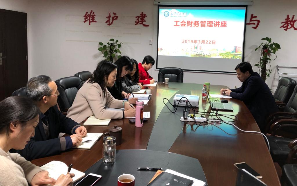 为落实好《湖南省基层工会经费收支管理实施细则》(湘工发﹝2018﹞20号)文件精神,3月22日下午,省教育工会财务部长蔡智应邀来校进行工会财务管理专题讲座。讲座由校工会常务副主席曹瑛主持,校工会全体工作人员、专职会计参加讲座。