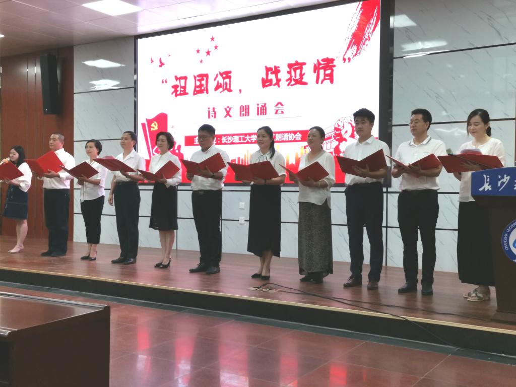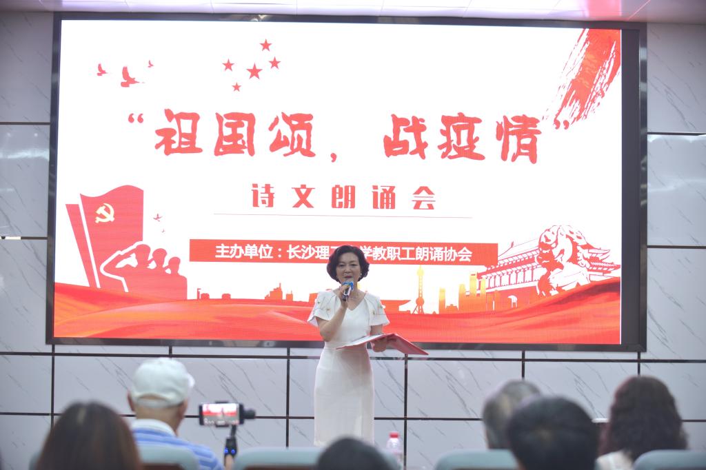 2020年8月5日,长沙理工大学朗诵协会齐聚四教报告厅,举行“祖国颂 战疫情”诗文朗诵会,歌颂口罩背后的故事,学习战疫过程的精神,体会诗歌美文的情怀。中国演说家俱乐部常务理事彭立军、长沙理工大学校工会副主席彭霞、湖南湖湘文化交流协会有声语言表演艺术委员会会员唐敏、中国人像摄影家协会会员黄琦、湖南省好声音朗诵艺术团成员陈昌达出席活动,共赏诗文。
