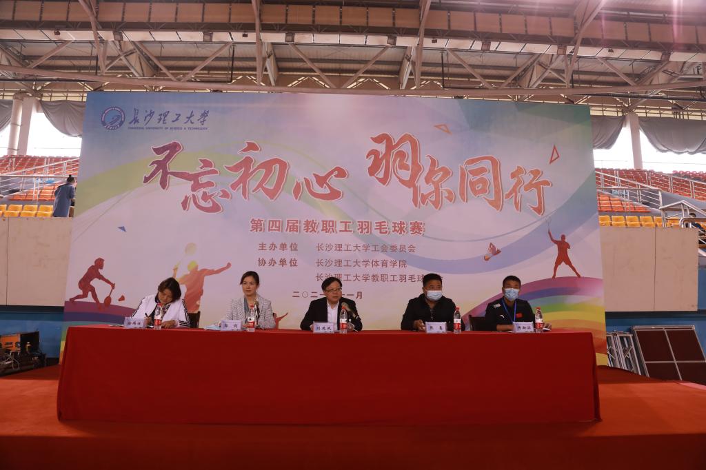 11月16日下午,雷竞技官网第四届教职工羽毛球赛在云塘校区体育馆开幕。校党委委员、副校长刘建民出席开幕式,开幕式由校工会常务副主席郭剑主持。