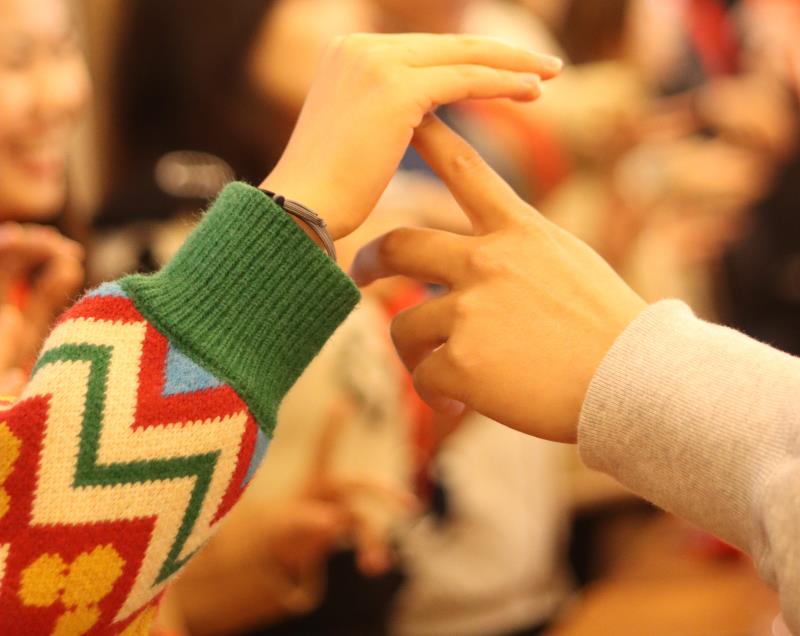 下午两时许,联谊活动正式开始。嘉宾入场前,分别领取了不同颜色的缘分号码牌(男士为蓝色、女士为粉红色)及红领巾,并从个性标签墙上选取符合自身特点的标签粘贴在身上。主持人对大家进行分组后,即开始互动环节。此环节以组织上课的形式进行了各种小游戏,分别为“课前三分钟——执子之手” “美术课——诗情画意”“体育课——桃花朵朵开”“心理课——激情寻宝”“课后三分钟——爱情转转乐”等。期间男女嘉宾们踊跃参与,游戏进行如火如荼,丰富的互动让大家迅速打破隔阂,增进了解,现场呈现出一片轻松愉快的氛围。