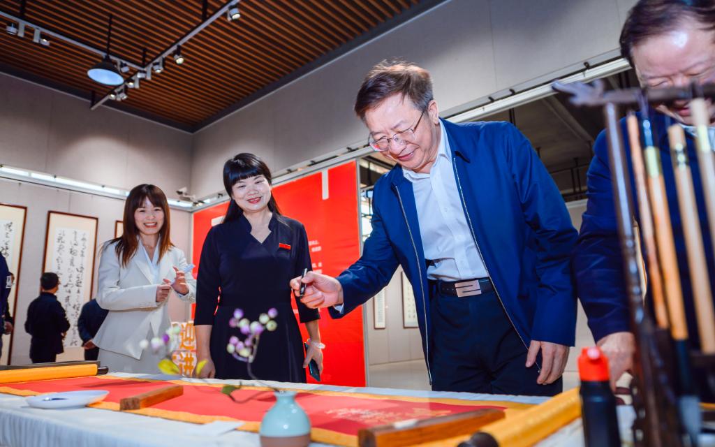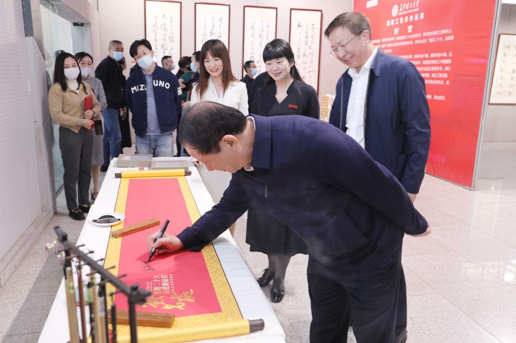 展厅里,领导、嘉宾们饶有兴致地仔细观赏每一幅作品,仔细聆听它们的创作故事;在场的教职工创作者不时与来宾们交流,大家深切感悟到中华优秀传统文化的精髓,感受到广大教职工爱党爱国的热情和立足岗位奋进新征程的决心。