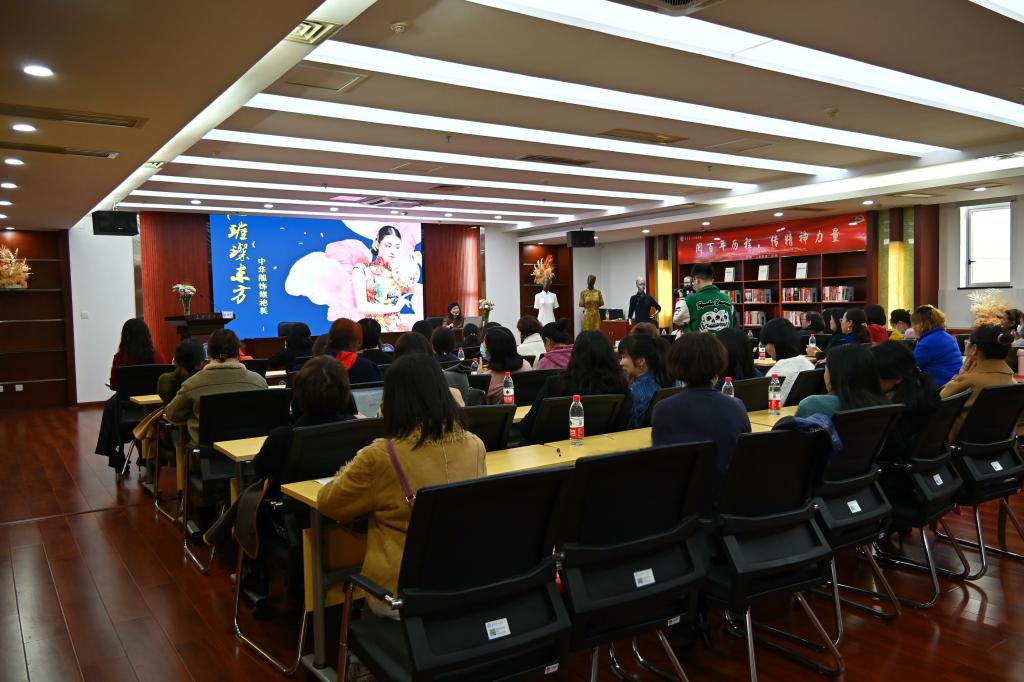 周利群教授作了题为“璀璨东方——中华服饰旗袍美”专题讲座。周教授阐述了旗袍作为中华文化的服饰符号之一,承载着美丽、智慧、优雅的中国形象,在服饰发展的历史长河中展现着无穷的魅力,是我们中国优秀传统文化的重要组成部分。她从旗袍审美、旗袍搭配、旗袍创新等三个方面为大家带来了深入浅出的精彩授课,带领现场参与者深度领略了中华旗袍之美。