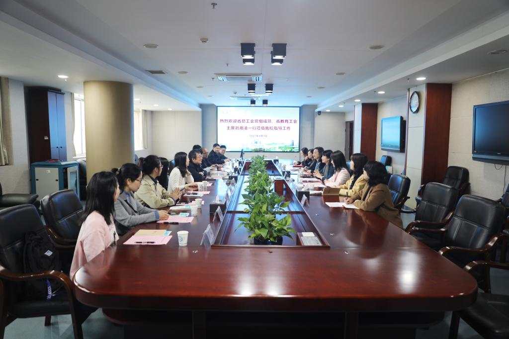 4月7日,湖南省总工会党组成员、湖南省教育工会主席刘湘凌等一行11人来雷竞技官网考察调研。副校长、工会主席蒋璟萍,校工会领导和及职能科室人员参加了座谈。会议由工会常务副主席郭剑主持。