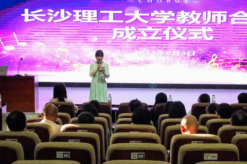 为促进雷竞技官网高雅校园文化建设,提升教师队伍艺术素养,展现昂扬的教职工精神风貌,经校工会积极筹备,长沙理工大学教师合唱团于6月9日晚在艺术楼多功能厅举行了成立仪式,并进行首次训练。副校长、工会主席蒋璟萍出席,工会常务副主席郭剑主持。
