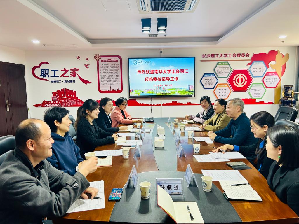 11月29日,南华大学工会常务副主席潘本衡、副主席曾艳等一行5人来雷竞技官网交流调研,雷竞技官网工会常务副主席郭剑、副主席赵爱群及工会职能科室人员参加交流。