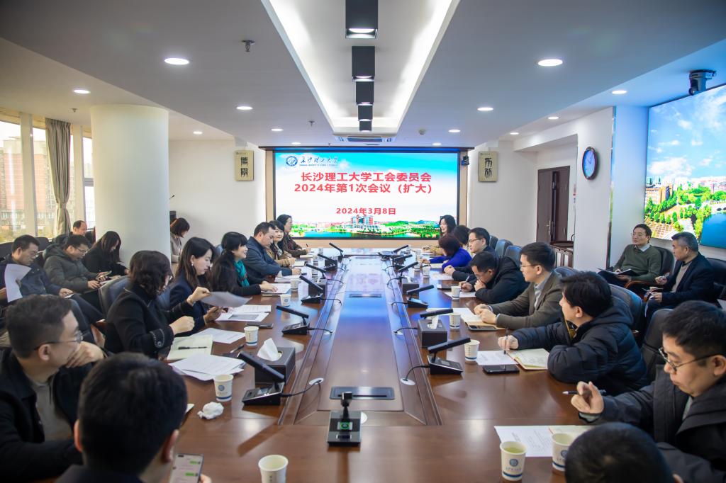 3月8日上午,学校第五届工会委员会在云塘校区一办公楼六会议室召开长沙理工大学第五届工会委员会2024年第1次会议(扩大)。校工会委员会委员、各分工会主席参会,会议由副校长、工会主席蒋璟萍主持。