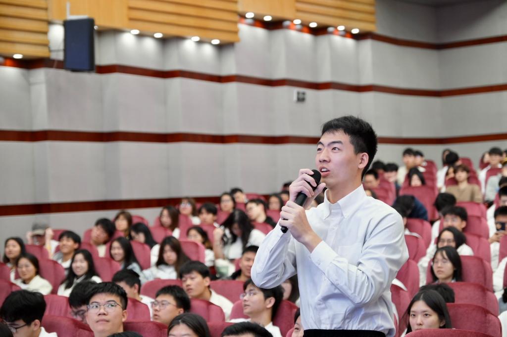 现场交流环节,大家踊跃交流,气氛热烈。“我们知道电力能源行业的工作环境大都要翻山越岭、爬坡过坎,有的还要远离城市,请问您是如何战胜各种挑战的?”“您认为作为新时代青年,应如何激发自己的创新创造活力,在具体工作中像您一样研发那么多项发明呢”雷竞技官网电气学院大四学生陈浩南的提问得到了劳模代表廖丽萍的耐心解答。