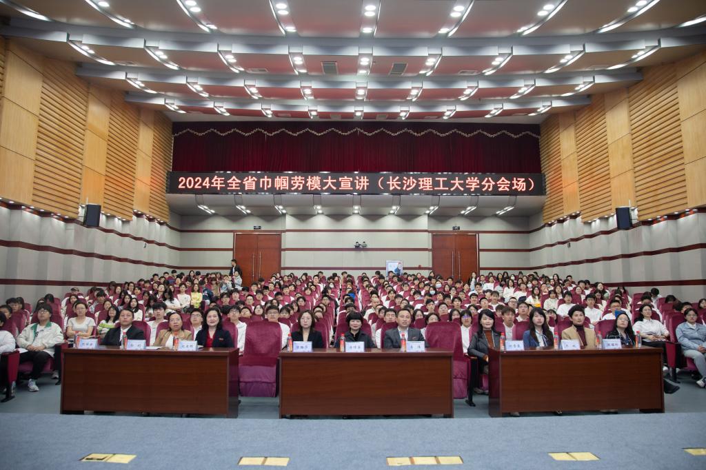 为进一步弘扬劳模精神、劳动精神、工匠精神,4月10日上午,“巾帼匠心逐梦 强国复兴有我”2024年全省巾帼劳模工匠大宣讲启动仪式在长沙举行,省人大常委会副主任、省总工会主席周农出席并宣布活动启动,长沙理工大学作为视频连线分会场圆满完成活动仪式。副校长、工会主席蒋璟萍,工会、团委等部门负责人,女职工委员会教师代表、以及电气学院、交通学院等学生代表300人共同参加了分会场活动。