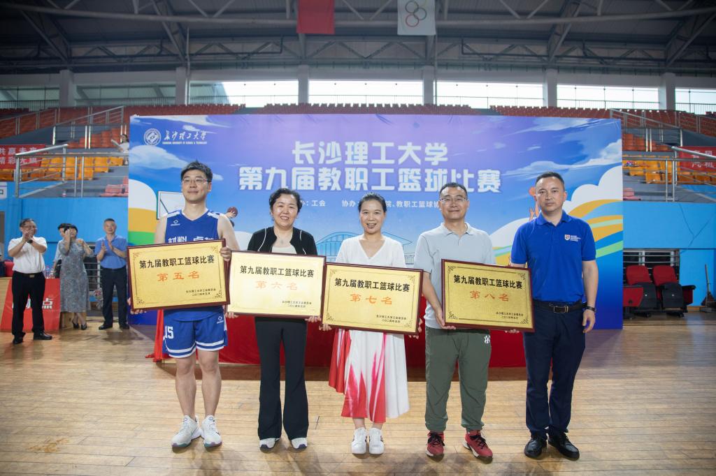 5月21日下午,雷竞技官网第九届教职工篮球赛在云塘校区体育馆落下帷幕。党委委员、副校长、工会主席蒋璟萍,党委委员、副校长胡永乐,以及工会、体育学院等部门负责人参加闭幕式并为获奖队伍和单位颁奖。