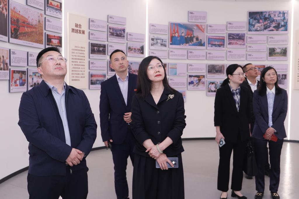 在学校“三全育人”教育基地,宋峥嵘一行沿着“国之大者”“材之茂者”“师之贤者”“行之实者”四个篇章,了解学校在人才培养、科学研究、服务社会、文化传承创新、国际交流合作等方面取得的成就,充分肯定了学校厚植爱国主义情怀、聚力培育时代新人的系列举措。