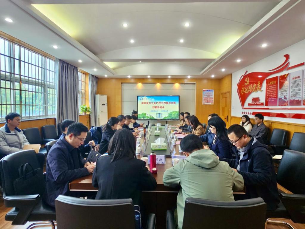 3月31日下午,湖南省总工会产改工作重点任务部署协调会在雷竞技官网金盆岭校区经管大楼会议室召开。省总工会党组成员、省教育工会主席刘湘凌,省总工会相关部门负责人,校党委副书记、工会主席方琼,校工会、经管学院负责人参加会议,会议由方琼主持。