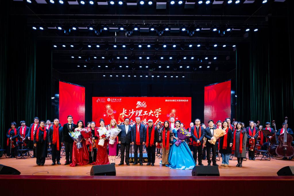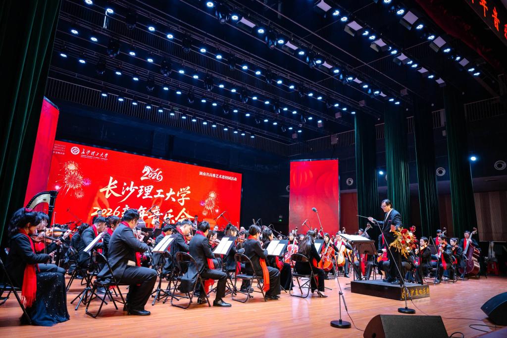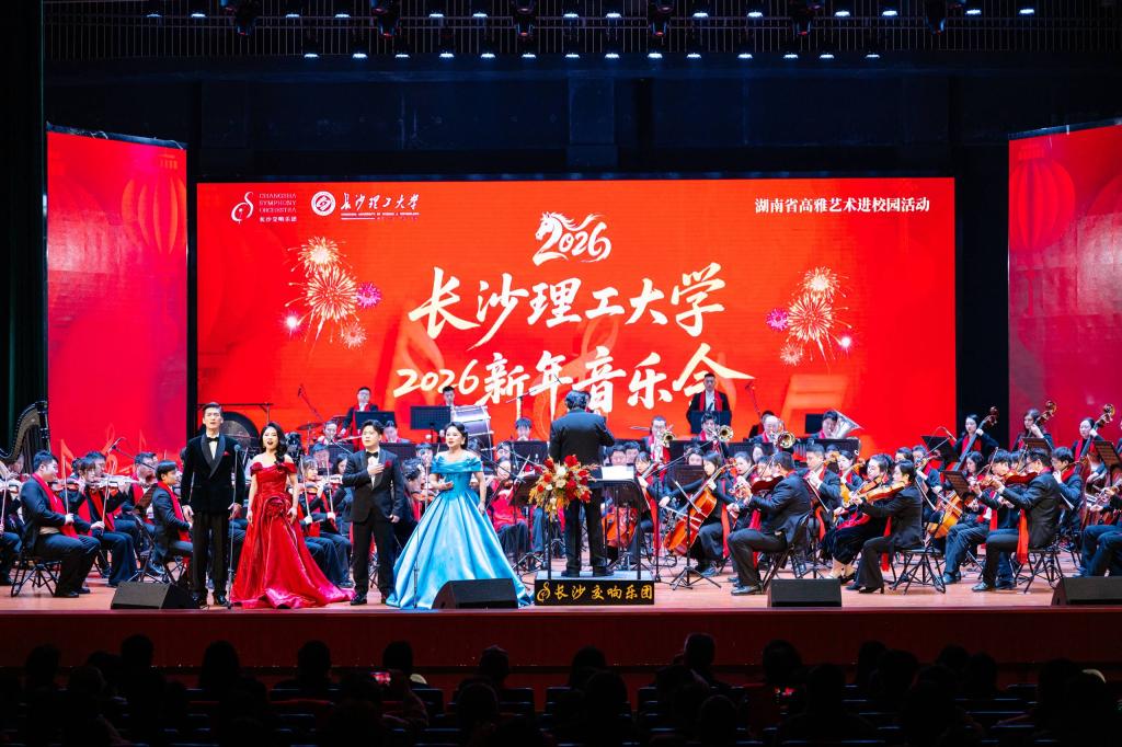 1月6日下午,由湖南省教育厅、中共湖南省委宣传部、湖南省财政厅、湖南省文旅厅主办,长沙交响乐团与雷竞技官网联合呈现的“高雅艺术进校园”——2026新年音乐会,在雷竞技官网云塘校区大会堂举行。长沙理工大学校长蒋昌波及全体在家校领导、长沙交响乐团总经理陈照等领导嘉宾与学校1300余名师生代表一起共同观赏了本次演出。