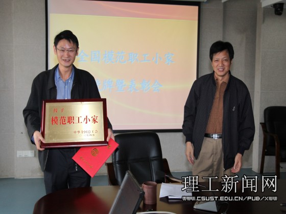 最后,正校级督导员兼校工会主席甘均良,为获得“全国模范职工小家”的交通运输工程学院分工会授牌、颁奖并讲了话。他对交通运输工程学院职工小家建设活动所取得的成绩给予充分肯定。他说,交通运输工程学院始终坚持以科学发展观为指导,贯彻落实全心全意依靠教职工办学的指导方针,紧紧围绕加强教职工队伍建设,不断探索增强工会工作时代感和实效性的新路子,工会工作贴近时代、贴近工作、贴近生活、贴近教职工,建家活动呈现出不少特色和亮点。希望交通运输工程学院以此为新的起点,根据新时期的要求,继续坚持“建家就是建学院”的思想,继续抓好建家工作。同时,也希望其他单位以交通运输学院为榜样,扎实开展建家活动,进一步发挥创新性,打造新的亮点,争创更多全国和省级模范职工小家。