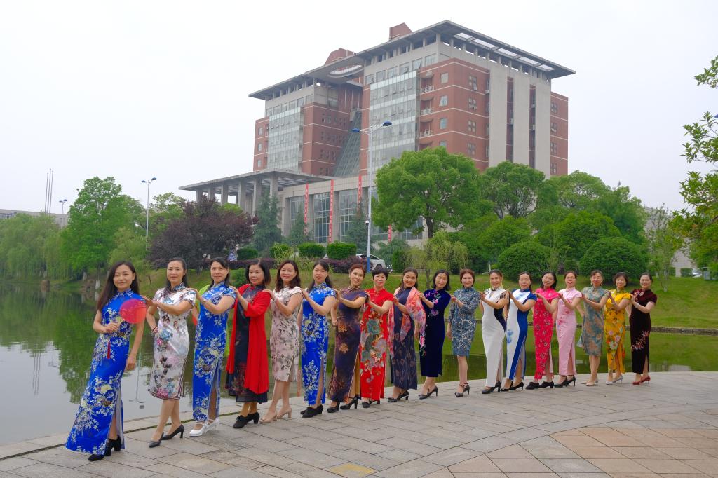 5月22日上午,长沙理工大学教职工旗袍协会初夏拍摄活动在云塘校区图书馆前举行。身着旗袍的协会会员,吸引了沿途经过的师生目光,给校园增添了一道靓丽的风景线。