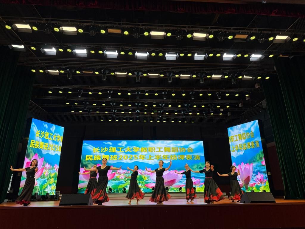 7月2日晚八点,长沙理工大学舞蹈协会民族舞本学期结课汇演在云塘大礼堂上演。十位老师齐聚舞台,共同为这一学期的民族舞教学成果画上完美句号。