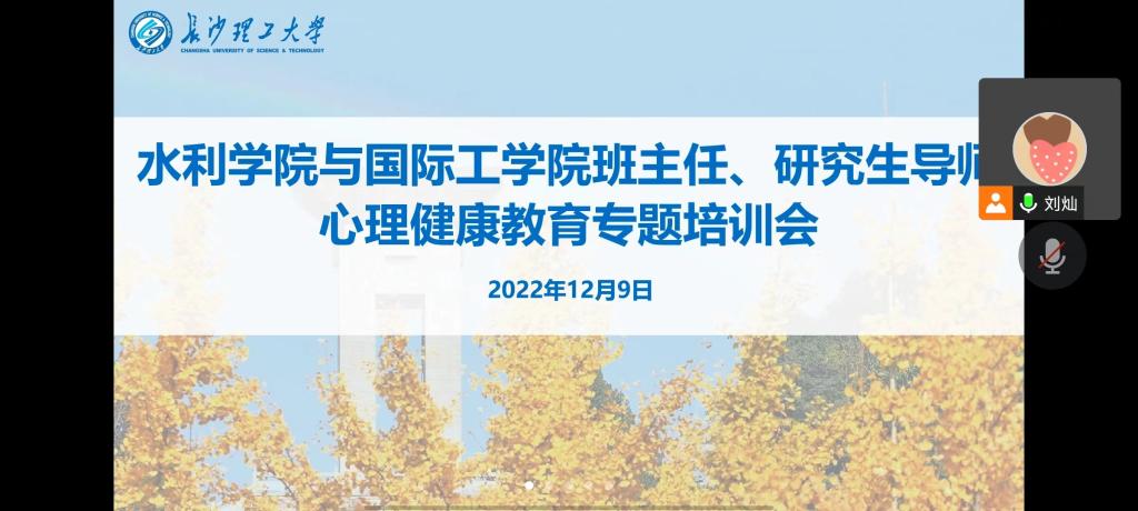 为进一步提高班主任、导师的心理健康教育的能力和水平,12月9日晚,水利学院和国际工学院依托腾讯会议平台共同开展班主任、导师心理健康知识培训,邀请了湖南省第二人民医院心理卫生中心主治医生朱娟娟主讲。水利学院和国际工学院全体班主任、导师、辅导员参加了此次培训,此次培训由水利学院心理辅导员刘灿主持。