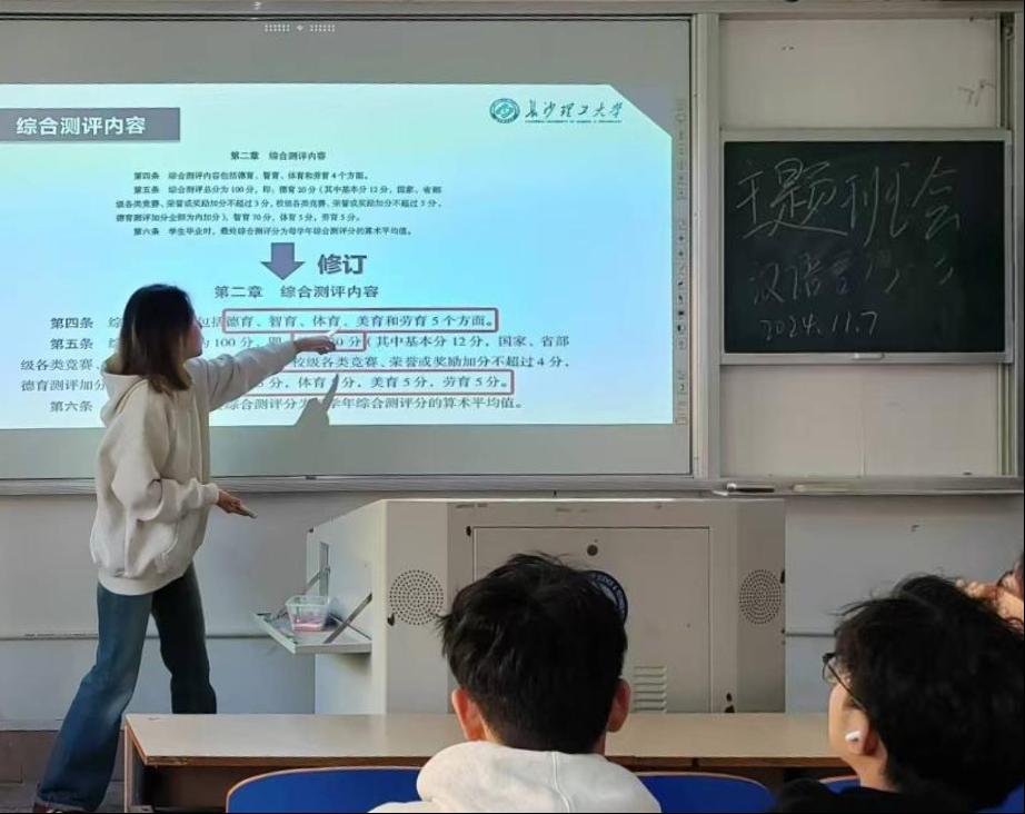 在此次班会中,各班认真学习了学校新修订的有关学生考试、综合测评等工作的管理办法,充分了解了最新文件要求,为今后更好地遵守各项规章制度、改进学习生活打下了坚实基础。此外,根据校园交通安全管理规定,各班强调了校内日常交通注意事项,提醒同学们共同维护校内安全。最后,各班结合真实案例,再次进行了食品安全、人身财产安全、消防安全、防范电信诈骗等各方面安全教育,帮助同学们进一步提升自我防护能力。