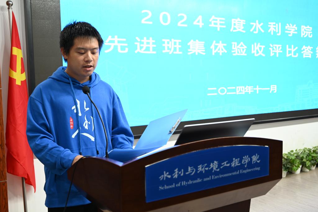 为表彰先进,树立典范,水利学院于11月14日晚在工科三号楼B319会议室举行了2024年度“先进班集体”验收答辩会。本次答辩会由21级辅导员綦丽、22级辅导员陈鑫林、23级辅导员张海林担任评委,100余名各班级班委代表观摩学习,会议由张韶涵同学主持。