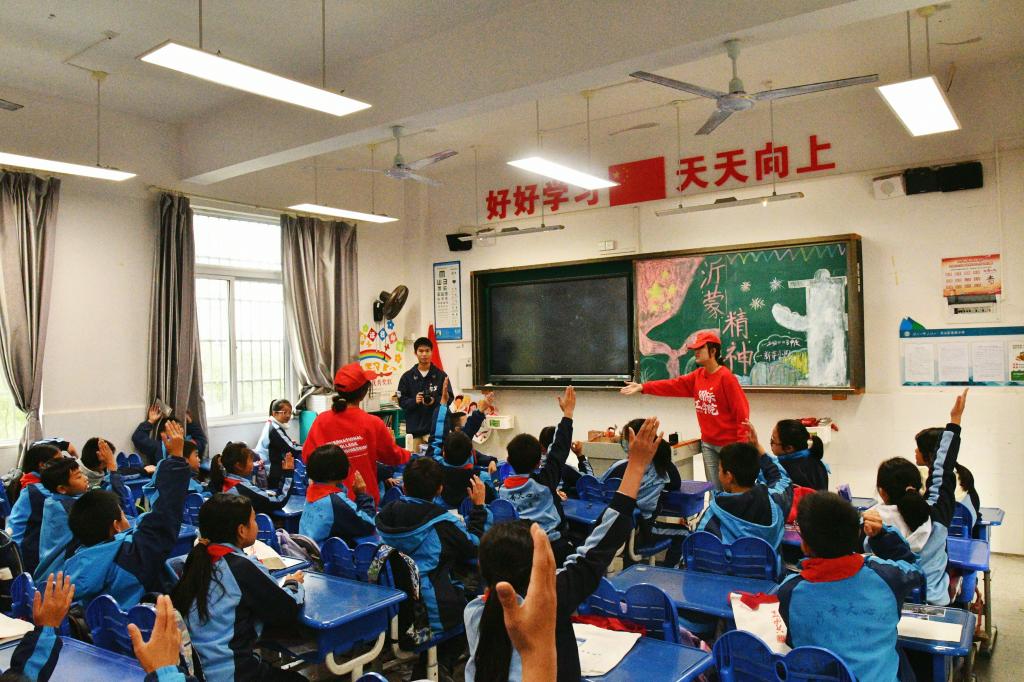 同学们争先恐后地抢答,踊跃地回答着有关沂蒙精神的课堂提问。活动寓教于乐,同学们对沂蒙精神和沂蒙故事有了更深的理解。