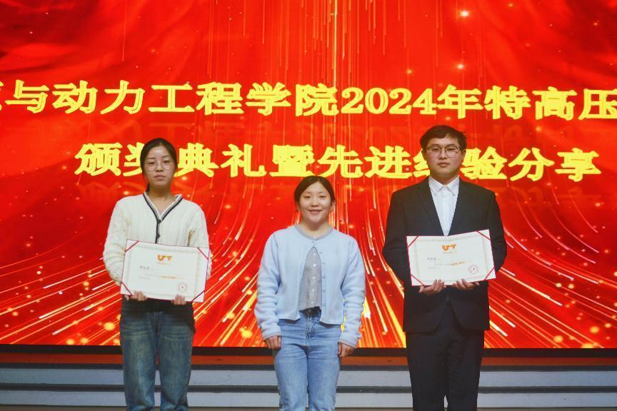 仪式开始,谢喆宣读了长沙理工大学能源与动力工程学院2024年度特高压电网奖学金表彰决定。经过严格的评选,李佳琪和胡家贤两位同学凭借优异的学业成绩和突出的科研表现,荣获2024年度特高压奖学金,陈颖为获奖同学们颁发荣誉证书。