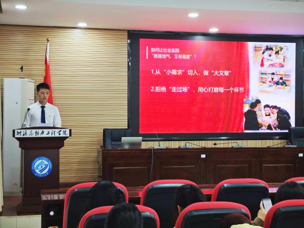 4月3日晚,能源与动力工程学院于新能源大楼2栋502学术报告厅召开2024-2025学年寒假社会实践活动总结表彰大会,院团委书记陈颖、100余名学生参加,会议由院团委学生会青志团干事贺欣怡主持。