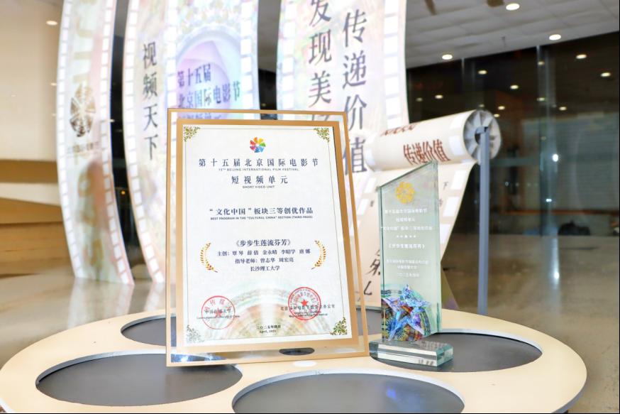 4月25日,第十五届北京国际电影节短视频单元荣誉盛典在北京举行。由文新学院新闻2201班覃琴、薛倩、金永晴、李昭学、唐娜等5位学生共同创作的短视频《步步生莲流芬芳》从6246部作品中脱颖而出,荣获“文化中国”板块三等创优作品。