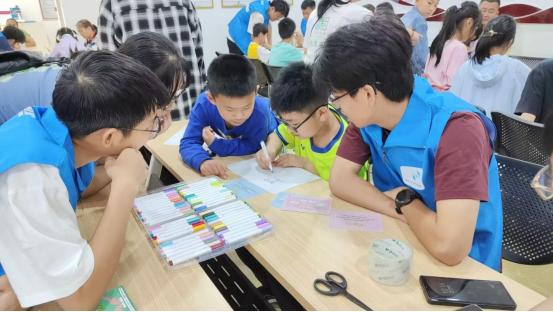“它在大自然里赖着不走,一呆就是好几百年,把小鱼小虾都弄哭了,还让小海龟误把它当水母吃进肚肚。我发现,我们随手丢掉的塑料,会悄悄伤害好多可爱的小动物!”主持人问到乱扔塑料的危害时,学锦社区的一位小女孩用童真的话语回答。在中海社区和学锦社区的活动室,志愿者和小朋友们坐在一起,学习了一些关于塑料的小知识,现场笑声不断。在画册创作环节,小朋友们发挥自己丰富的想象力,画出了自己心中拟人化的塑料制品。水利类2402班志愿者魏佳丽分享道:“看到小朋友们踊跃积极发言,敢于讲述自己对垃圾减排的看法,以及制作一幅幅美丽的图画,那些童真与热情,让我真切感受到守护地球的新生力量正蓄势待发。”