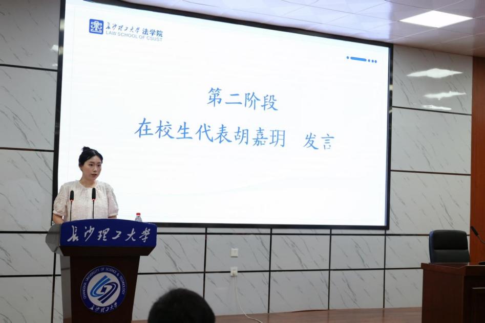 “最后一课”在庄严的国歌声中拉开序幕。在校生代表胡嘉玥深情回顾了自己在法学院的成长经历,分享了与毕业生们的点点滴滴,感恩学长学姐们的帮助与启发。“轻舟已过万重山,前路必是朝阳万里”,她以诗意语言表达了对毕业生们的美好祝愿。