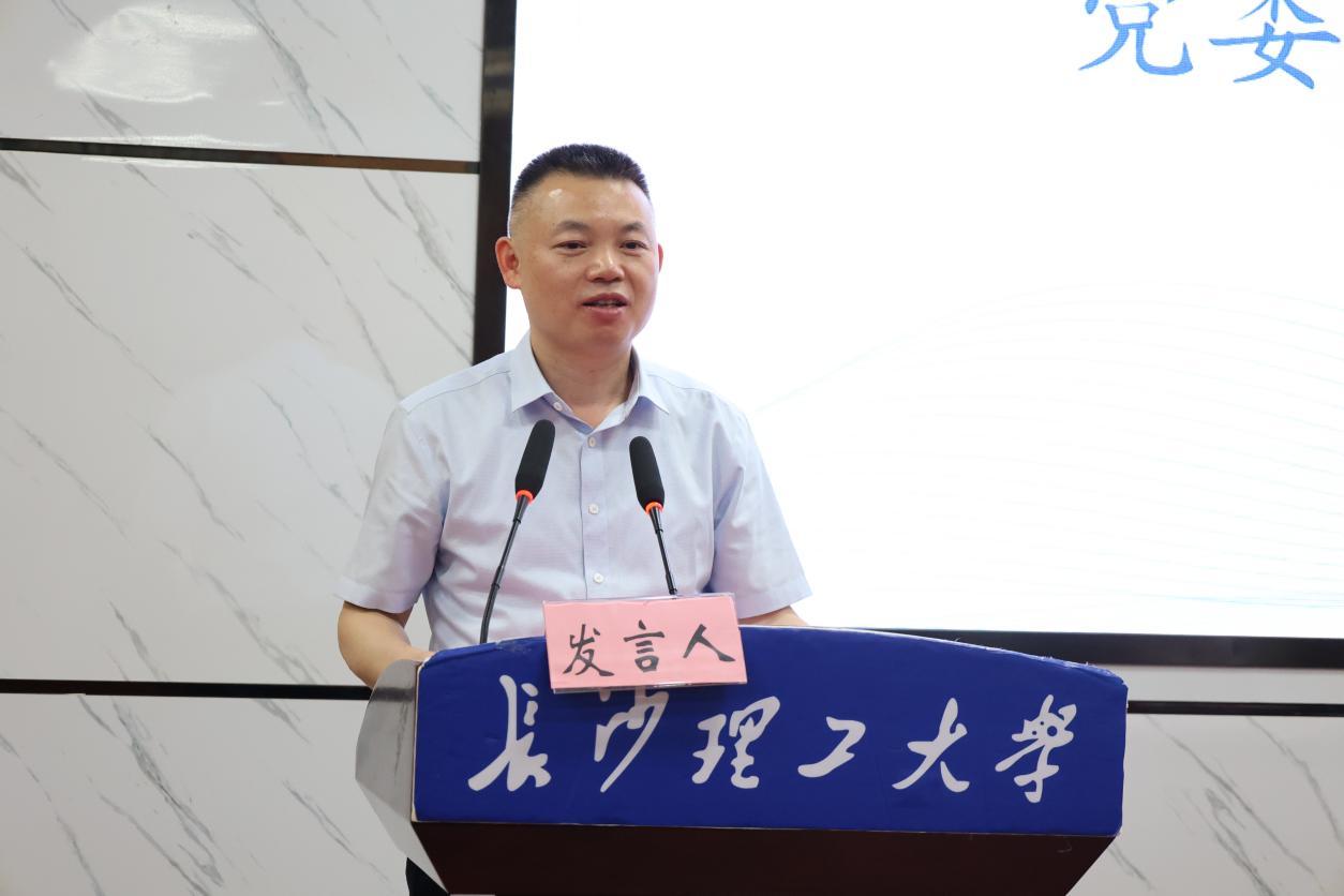 龚文斌为全体毕业生讲授了最后一堂党课。他首先为毕业生取得的优异成绩点赞,随后提出三点希望:一要胸怀家国情怀,铸造法治脊梁;二要坚持终身学习,紧跟时代潮流;三要涵养“清风之德”,保持廉洁自律。他勉励所有毕业生,在变革的时代要守住初心,在建设祖国的征程中绽放青春芳华。最后,他暖心寄语即将毕业的学子:“无论未来的路途如何漫长遥远,长沙理工大学法学院始终是你们坚实的依靠和后盾,我们热切期盼你们常回家看看。”