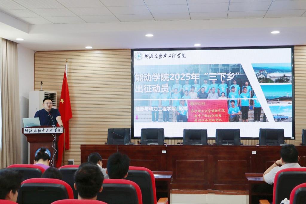 7月2日上午9:00,能源与动力工程学院在云塘校区新能源大楼2栋502报告厅召开2025年暑期“三下乡”社会实践出征仪式。院党委副书记张晓烽、各团队指导老师以及各团队部分代表参加会议。
