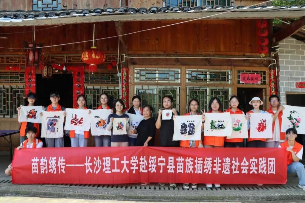 近日,长沙理工大学文学与新闻传播学院“苗韵绣传”社会实践团走进绥宁县大园古苗寨,开展苗族插绣专题调研与宣传活动,为这一古老非遗技艺的传承注入青春力量。
