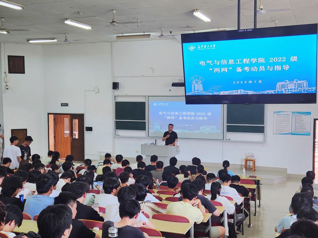 7月4日,电气学院在综合教学楼B203召开2026届本科毕业生暑期备考动员大会。本次大会聚焦考研与国家电网、南方电网(简称“两网”)备考两大核心议题。学院党委书记丁丹、副书记周巍、辅导员吴佳骐出席,学工办主任楚艳鸽主持会议,300余名学生参会。