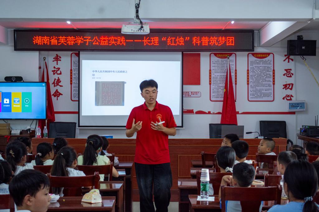 “同学们,你们知道在没有电脑和打印机的古代,书籍是怎样‘诞生’的吗?”7月11日,在湖南省张家界市桑植县竹叶坪乡金龙村的一间教室里,长沙理工大学能动学院“红烛”科普筑梦团暨匠心传承实践团志愿者刘嘉雨向小朋友们抛出了疑问,即将带来一场非遗手工“沉浸式”体验课堂,带领他们一起走进“活字印刷术”的悠久历史,亲身体验非物质文化遗产的魅力。
