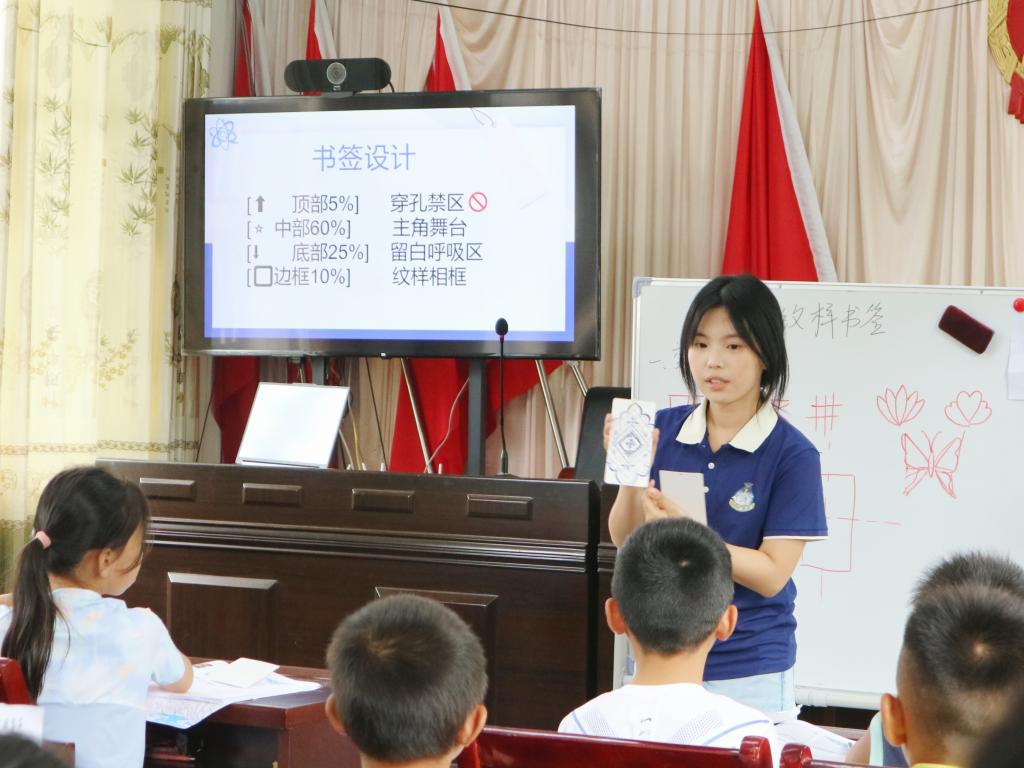 “八角纹真的是‘八方来财’吗?”“蝙蝠涂红会更喜庆吧!”7月18日,张家界市桑植县走马坪白族乡走马坪村支部教室,长沙理工大学物理与电子科学学院“小小科学家”团队执笔引导乡村儿童将非遗白族纹样几何纹、花卉纹、动物纹“变”成书签,千年纹样就此跃入童真世界。
