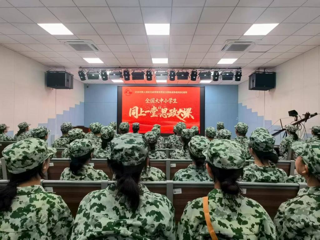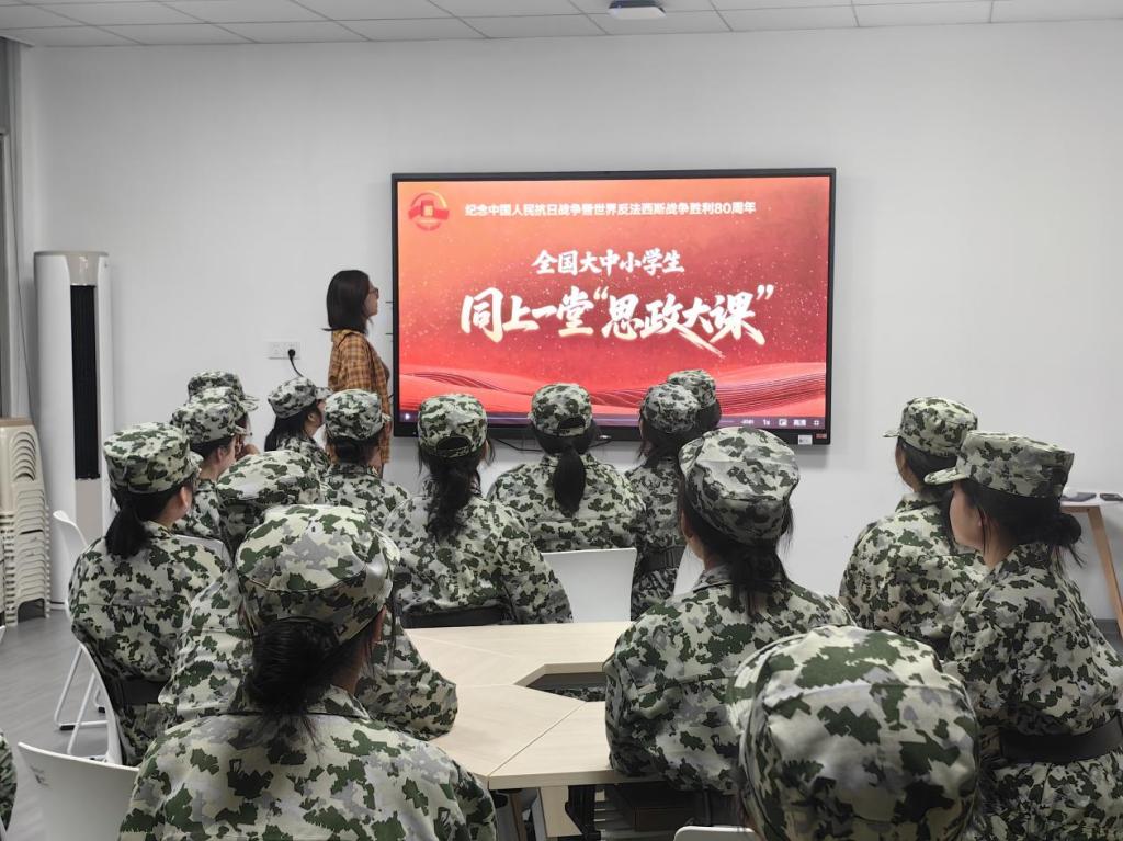 大一新生着军训服装有序就座,通过课程中“青年与抗战”的案例对比,感悟“一代人有一代人的长征”的深刻启示;团学干部结合自身学生工作实际,纷纷表示要传承抗战时期青年先锋奔赴前线的热血担当,在校园活动组织、志愿服务中主动作为。全体党员佩戴党徽认真聆听,新闻学本科生党支部王舒涵同志在观看后动情地说:“爱国不仅是铭记历史,更要转化为实干担当。抗战精神是跨越时空的宝贵财富,我们要做有骨气、有底气的新时代青年。