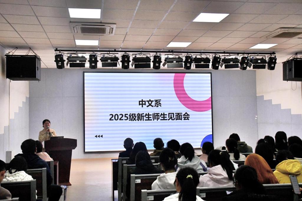 秋意渐浓,书香正暖。10月21日下午,长沙理工大学金盆岭校区9教113教室内,一场别开生面的新生见面会如期举行。由文新学院中文系精心组织,三十余位教师与汉语言文学专业2025级全体新生齐聚一堂,在院党委委员兼系主任黄婧老师的主持下,共同开启了一场名为“中文之约”的温暖旅程。