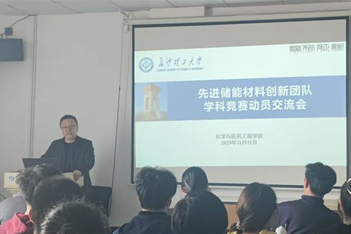 2025年11月11日,为积极备战即将到来的高水平学科竞赛,进一步激发团队成员的创新潜能与实践热情,化学与医药工程学院“先进储能材料创新团队”精心组织了一场学科竞赛动员交流会。会议旨在统一思想、凝聚共识、分享经验,为团队在新一轮竞赛周期中再创佳绩奠定坚实基础。