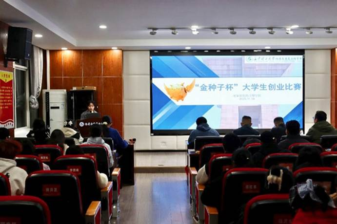 为激发学子创新创业热情,培育优质创业项目,营造“敢闯敢试、勇于创新”的浓厚氛围,11月18日,化学与医药工程学院2025年“金种子杯”大学生创业大赛院级选拔赛在工科三号楼B319报告厅顺利举行。本次比赛吸引全院近百名学生到场观摩学习,为创新创业爱好者搭建了交流展示、切磋提升的优质平台。