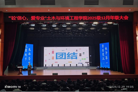 12月29日,土木与环境工程学院于云塘校区大会堂召开2025级本科生“‘砼’信心,爱专业”12月年级大会,年级辅导员及全体2025级本科生参会,会议由年级辅导员龚丁主持。