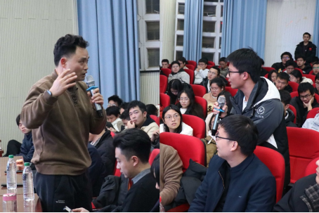 廖杨超结合个人成长经历,分享了从本科成绩提升、考研调剂到海外攻读博士的求学历程。他着重强调了自主学习与持续努力的重要性,建议同学们夯实专业核心课程基础,为长远发展做好充分准备。