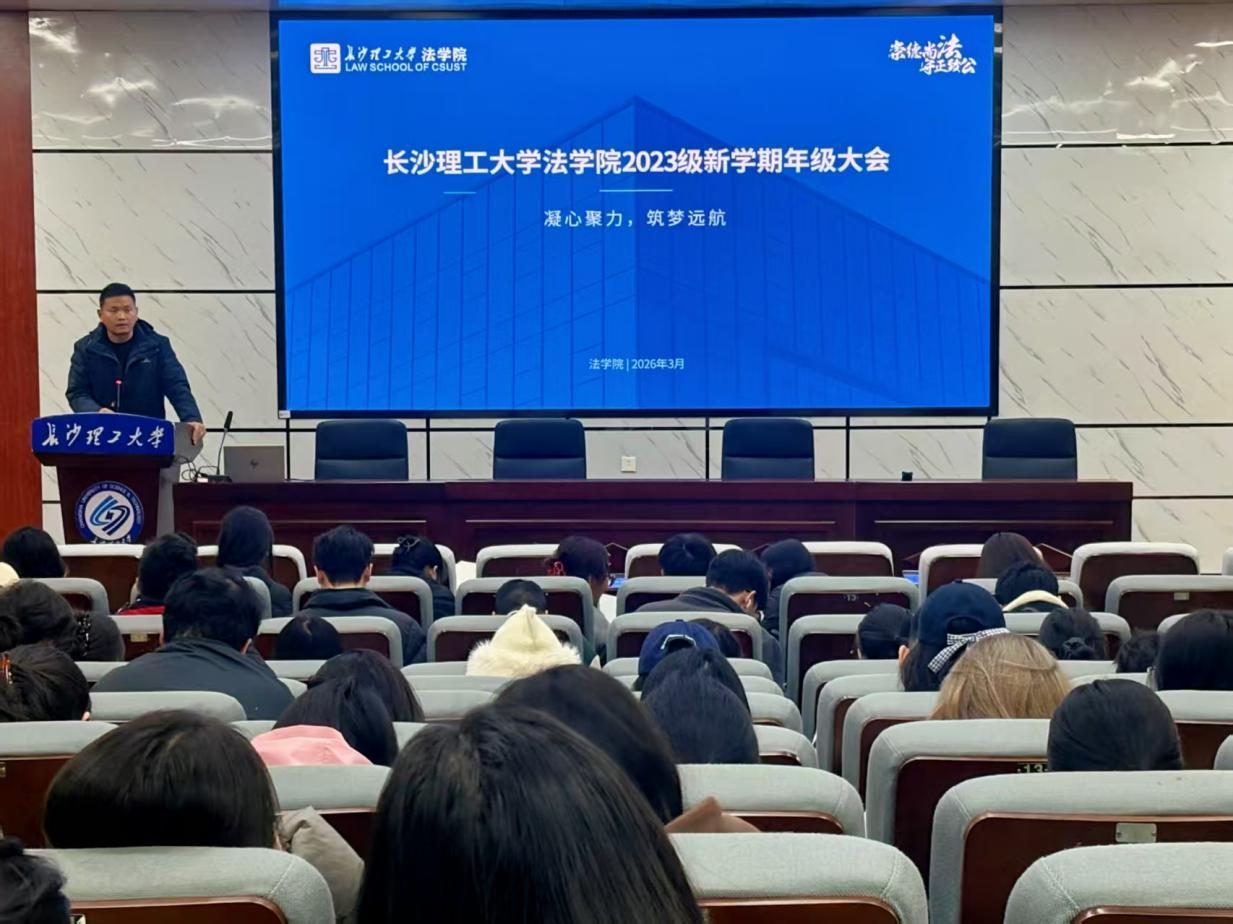 为切实保障学生安全,引导大三学生做好新学期规划,法学院在四教学术报告厅举行了2023级本科生年级大会。本次会议由年级辅导员兰贵辉主持,2023级全体学生参会。