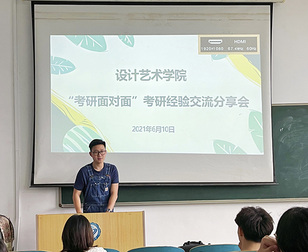 6月10日上午,设计艺术学院于建筑艺术楼A102召开考研经验交流分享会。此次分享会特别邀请了唐腾、魏文轩、黄天一、姜乃琪、董灵逸5位优秀毕业生与有意向考研的学弟学妹进行交流。