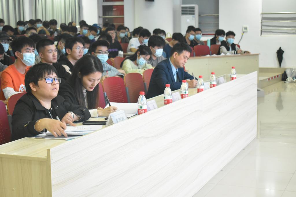18级学生代表贾敏从“考研择校”“时间规划”“学习经验”三个方面分享了考研备考注意事项和心得体会。党员代表尹振浩讲述了自己对优良学风的见解,他呼吁大家遵守校纪校规,诚信迎考。