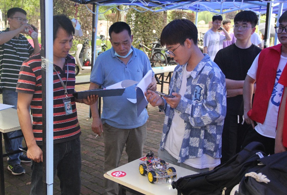 开幕式结束后,评委老师开始对每个项目逐一检查并评分。在评比过程中,每组参赛队伍就作品设计理念、运行制作原理、成品展示等作了详细的讲解。各位评委老师认真听取了各参赛小组的汇报,对各参赛作品提出相应的问题与不足,并在成品展示环节针对每小组的作品分别给予了中肯的建议和意见。