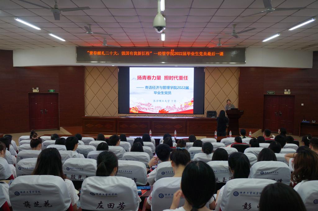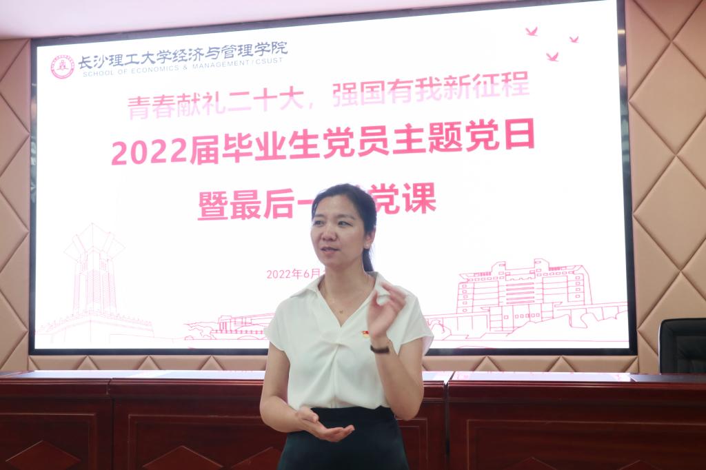 6月15日下午,经管学院2022届毕业生党员主题党日暨最后一堂党课在云塘校区文科楼A200顺利开展。此次党课由经管学院党委书记丁丹主讲,党委副书记唐青、辅导员何涛、辅导员何艳芝参加会议,由毕业生辅导员叶鑫主持。
