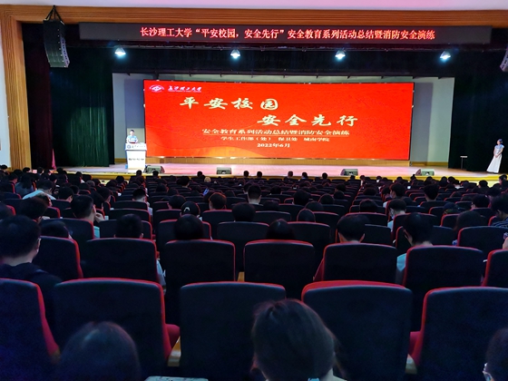 6月15日,长沙理工大学“平安校园 安全先行”安全教育系列活动暨消防安全演练在金盆岭校区五教大礼堂举行。活动由城南学院承办。校学工部(处)副部长王煜坤、保卫处副处长王艳鸿,城南学院党委书记李修春、副书记陶传谱以及相关师生共1000余名人员参与。