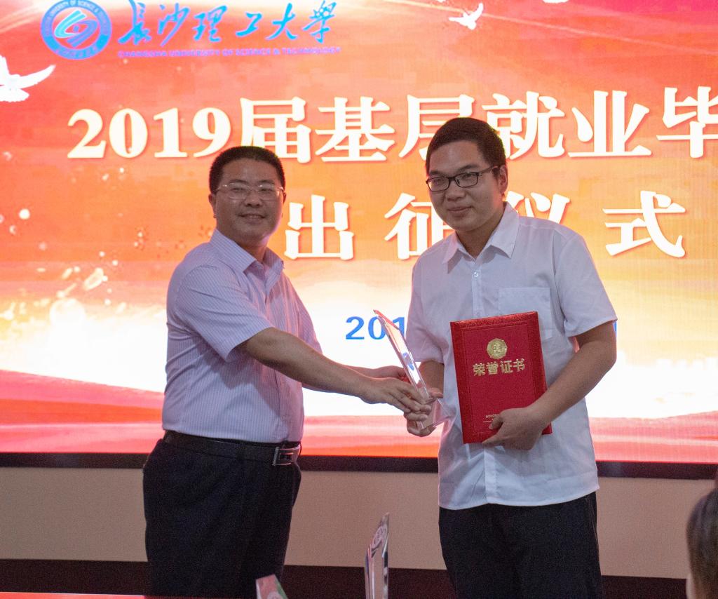 活动中宣读了《关于表彰2019届基层就业优秀毕业生和优秀志愿者的决定》,曹一家为基层就业优秀毕业生和优秀志愿者颁奖,鼓励基层就业毕业生再接再厉,扎根基层,在未来的工作中做成更大的成绩。