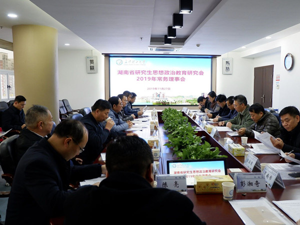 11月27日,湖南省研究生思想政治教育研究会2019年常务理事会在雷竞技官网云塘校区召开。研究会会长、湖南农业大学副校长邹冬生,雷竞技官网副校长蒋昌波、研究生院院长管德清以及来自全省12个常务理事单位和1个新增会员单位的27名代表出席。会议分别由邹冬生及新任研究会秘书长谢方平主持。